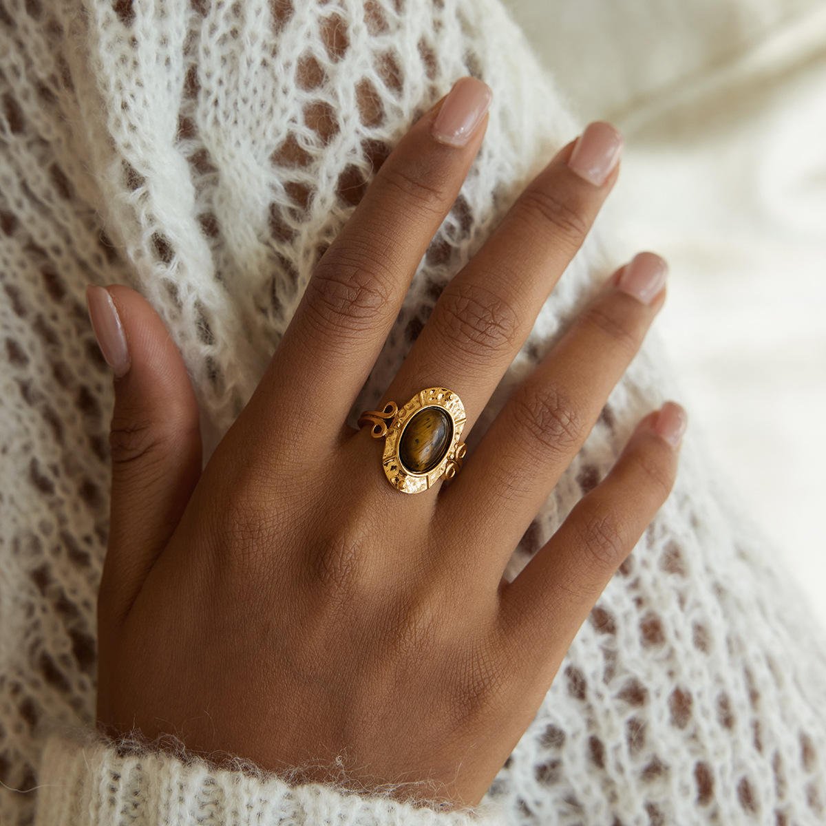 - Material – Stainless Steel + Tiger Eye