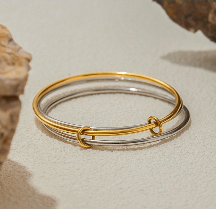 Two-Silver Gold Bangle
